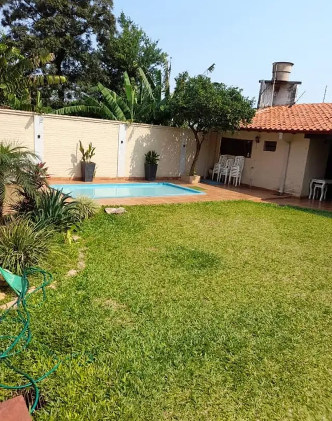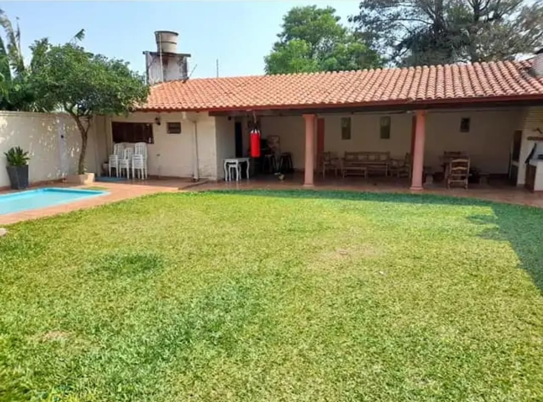 PRECIO: 4.600.000 GS CUENTA CON: SALA COCINA COMEDOR BAŅO SOCIAL CUATRO DORMITORIOS (UNO EN SUITE) QUINCHO CON PARRILLA PATIO CON PISCINA AREA DE SERVICIO ESTACIONAMIENTO PARA 6 VEHICULOS