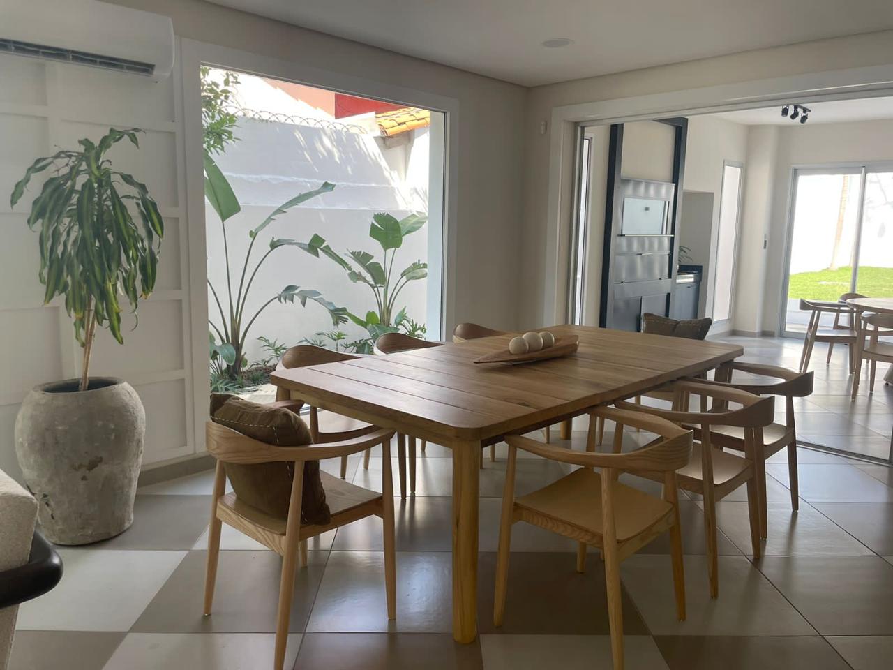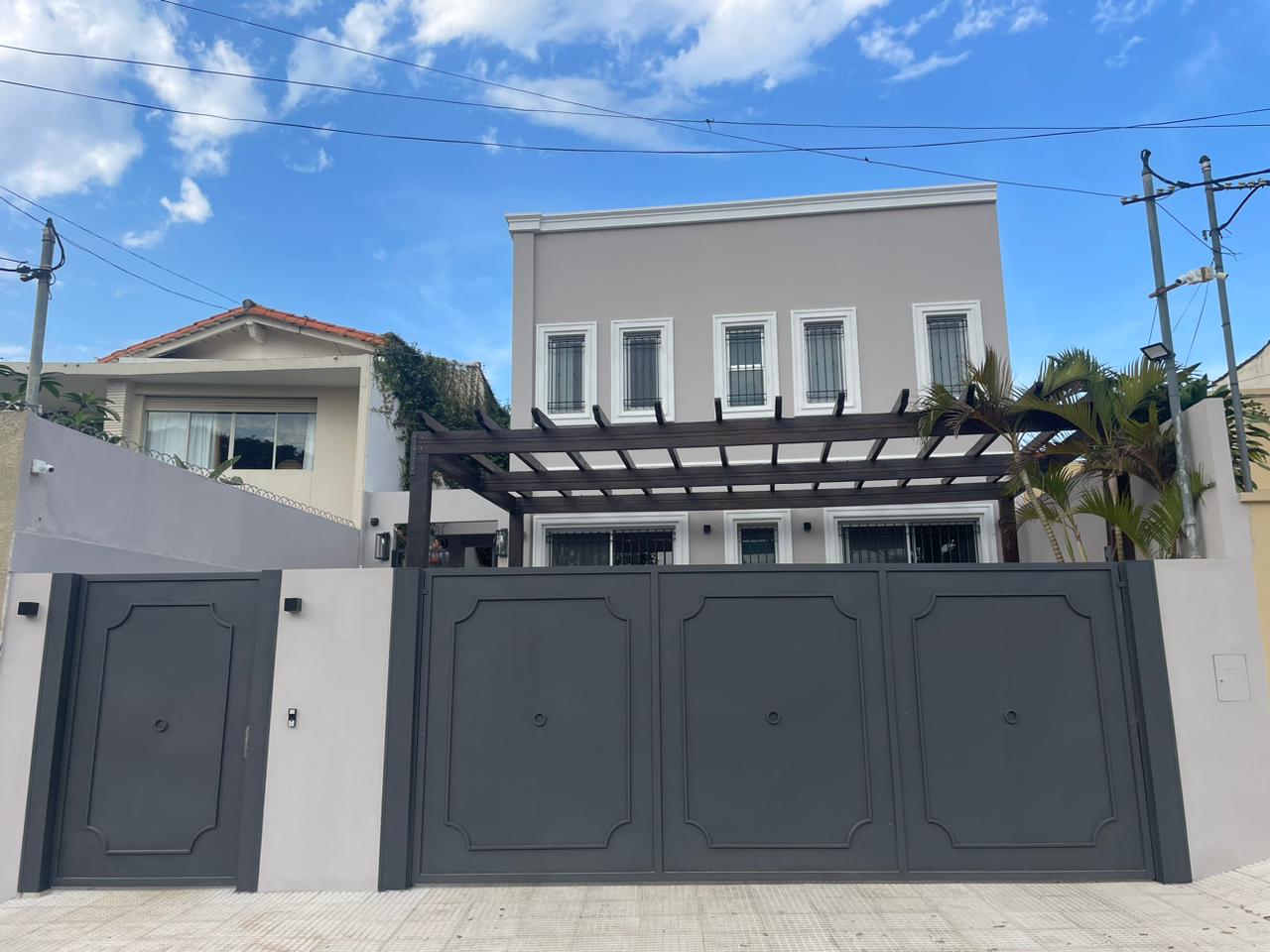 PRECIO: 450.000 USD CUENTA CON: M2 de Terreno: 408 (10 x 40) con un pequeño excedente M2 de Construcción: 290 Planta Baja: Portón automatizado Cochera para 2 camionetas grandes Baño social Escritorio o Estudio Baño social completo Estar Ãntimo o play room amoblado Living con chimenea moderna y comedor social integrados Cocina integrada con desayunador completamente amoblada y equipada Baño independiente del quincho con ducha ( de uso para el servicio doméstico) Patio interno con cascada Quincho con parrilla amoblado y climatizado JardÃn amplio empastado Piscina Depósito de piscina y jardinero RegadÃo automático Aberturas de aluminio con protección anti mosquitos Cámaras con alarma JardinerÃa y paisajismo Planta Alta Master suite con vestidor y baño amplio , balcón con vista a la piscina. Habitación 1 con placard Habitación 2 Baño familiar que comparten ambas Losa preparada para un baño más y convertir en suite una de las habitaciones secundarias Ingreso independiente: Lavadero con espacio al aire libre Depósito Habitación de servicio que comparte con baño (del quincho) Escalera para ingreso independiente a su baño Todos los ambientes con aires acondicionados splits nuevos y con cortinas anti solares y de lino Algunos muebles empotrados quedan e incluyen en el precio.