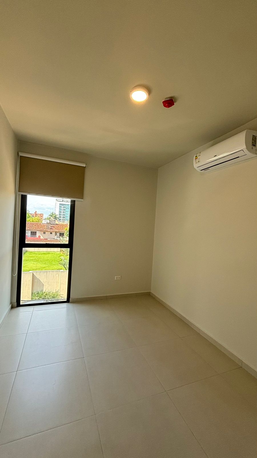 PRECIO: 6.000.000 GS IVA Y EXPENSAS INCLUIDAS CUENTA CON: 72 m2 semi amoblado, Piso 2 2 dormitorios,1 en suite baño familiar social 1 cochera techada Cocina /anafe Juego de Comedor 4 personas Heladera Lavarropa Horno eléctrico Paneles de TV por las paredes Cortinas antisolares Amenities: piscina quincho climatizado parrilla sereno 24 horas camaras de seguridad